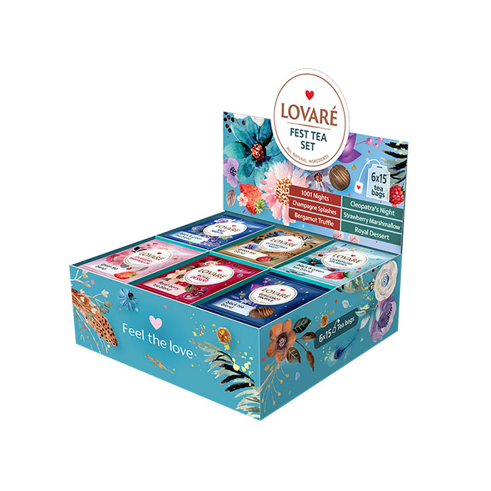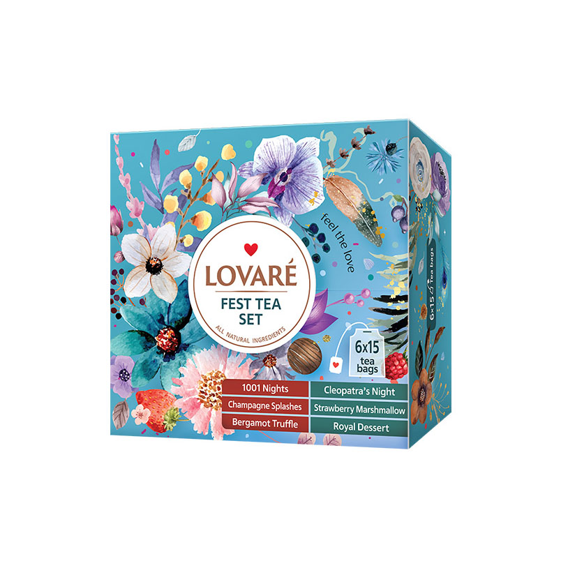 LOVARÉ Fest Tea Set je kolekcia čajov plná obľúbených chutí čierneho a zeleného čaju v krásnom darčekovom balení.