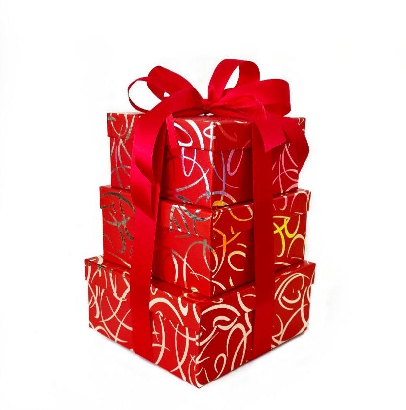 Výnimočná a bohato naplnená kaskáda v rubínovej farbe. V každej z darčekových škatuliek nájdete znamenité delikatesy, ktoré výborne ladia s francúzskym červeným vínom.
