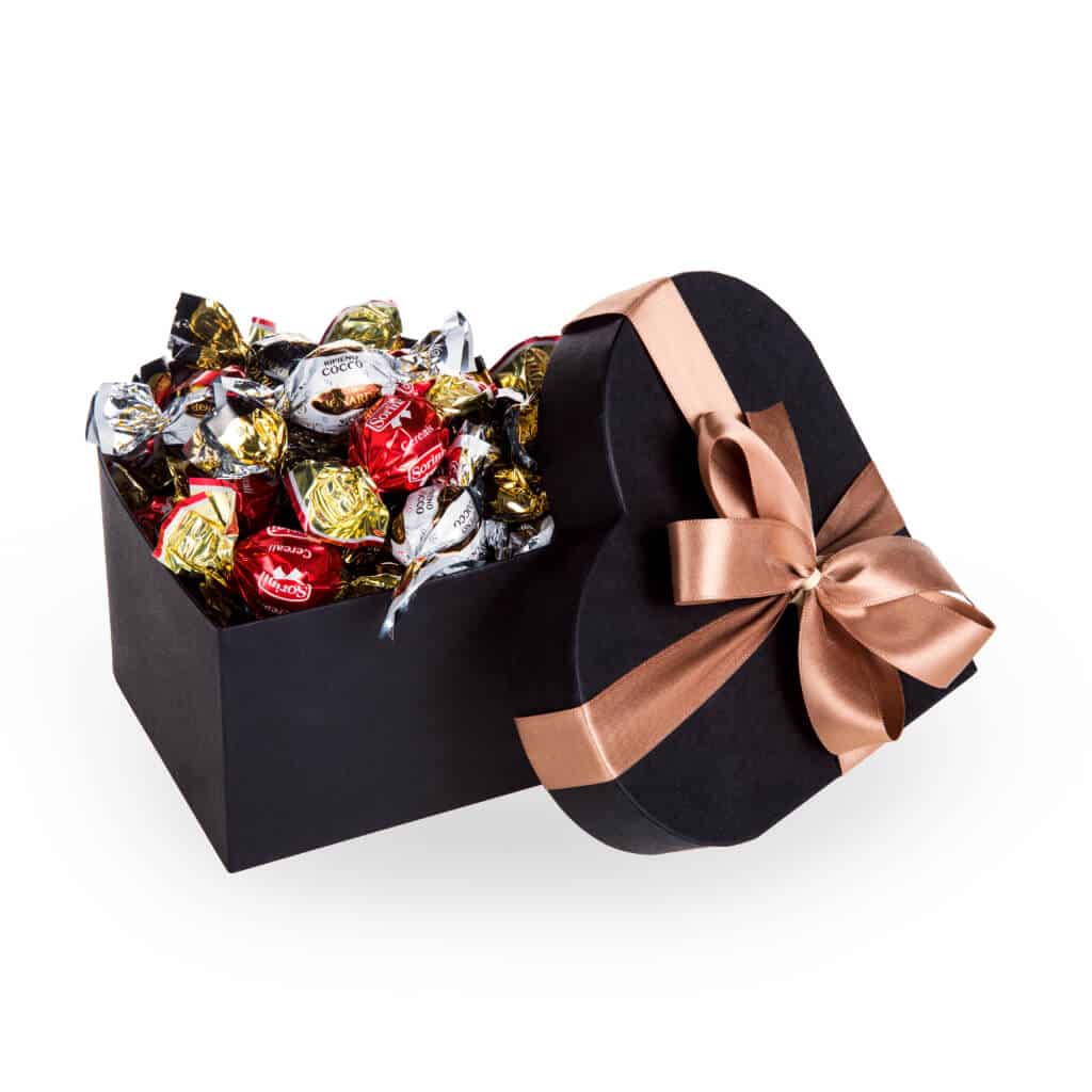 Darček naozaj od srdca! Taká je darčeková ručne vyrábaná škatuľka v tvare srdca, naplnená až po okraj našimi najobľúbenejšími pralinkami. Talianske čokoládové bonbóniky v troch príchutiach sú krásne jednotlivo zabalené, ale predovšetkým lahodné a na jazyku sa rozplývajúce!