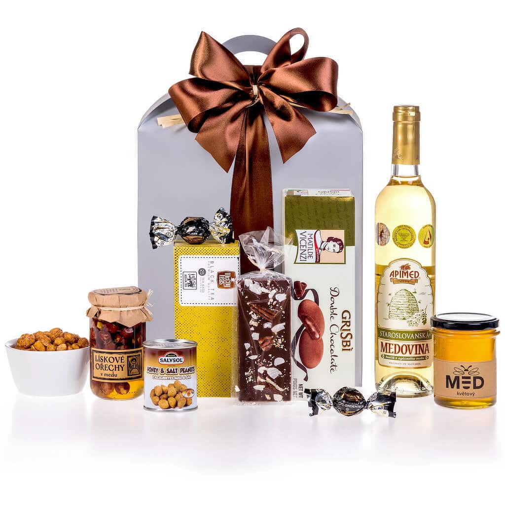 Ďalší v poradí našich nových darčekových košov v špeciálnom balení. Vnútri darčekového boxu sa ukrývajú medové špeciality a dobroty, ktoré k medu dobre ladia a všetko je zamatovo sladké a výborné. Staroslovanská svetlá medovina prekvapí svojou výbornou chuťou a jemnosťou. To správne medové rozmaznávanie!