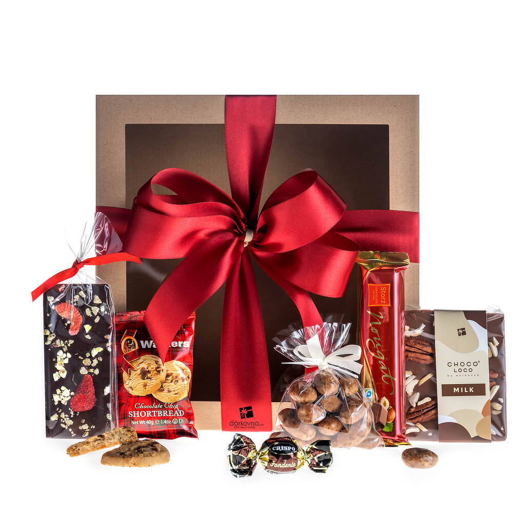 Výber čokoládových lahôdok vo veľkom darčekovom boxe, ktoré zaručene okúzlia a chuťovo uspokoja každého milovníka sladkostí.