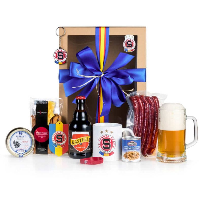Pre všetkých fanúšikov futbalového týmu Sparta! Darčekový box zladený do farieb športového klubu, obsahuje okrem iných delikates výborné „chlapské“ pivo Kasteel, ale tiež darčekové predmety s logom obľúbeného tímu.