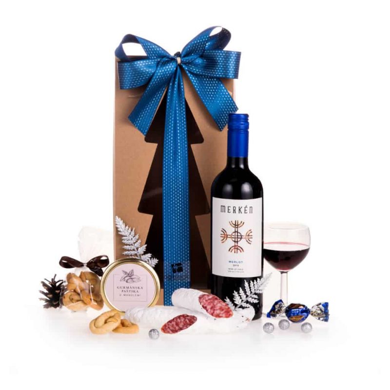 V darčekovom boxe s vianočným motívom sa ukrýva darček, ktorý poteší každého muža! Červené chilské víno sa skvele snúbi s mäsovými pochúťkami, akými sú klobásky s bielou plesňou na povrchu a gurmánska paštéta ovoňaná mandľami. Nesmie chýbať ani malá porcia krehkých domácich praclíčkov so škvarkami. Ideálne tiež ako firemný darček.