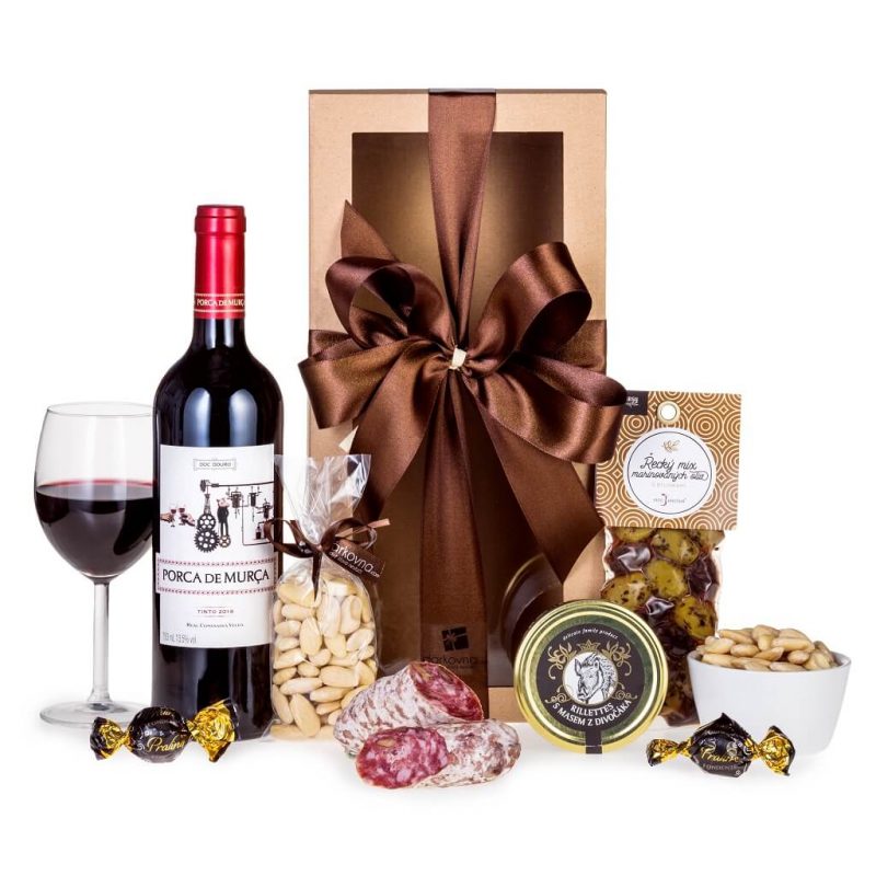 Krásny, premyslený box, ktorým urobíte radosť takmer každému. Vynikajúci medailami ovenčené červené víno, k tomu na farmárskych trhoch vyhlásená klobáska s vlašským orechom, v bylinkách marinované olivy, mandle v slanom kabátiku i niečo sladké na záver. Gurmánske hody môžu začať!