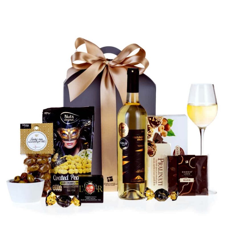 Úžasný darček pre mužov, ktorý v sebe ukrýva samé delikatesy. Zlatou medailou ocenené biele víno, ktoré sa skvele snúbi s francúzskou terinkou vyrobenou podľa originálnej receptúry. Pomyselnou čerešničkou na torte je na zákazku vyrobená belgická horká čokoláda s posypom z chilli a kávových zŕn.