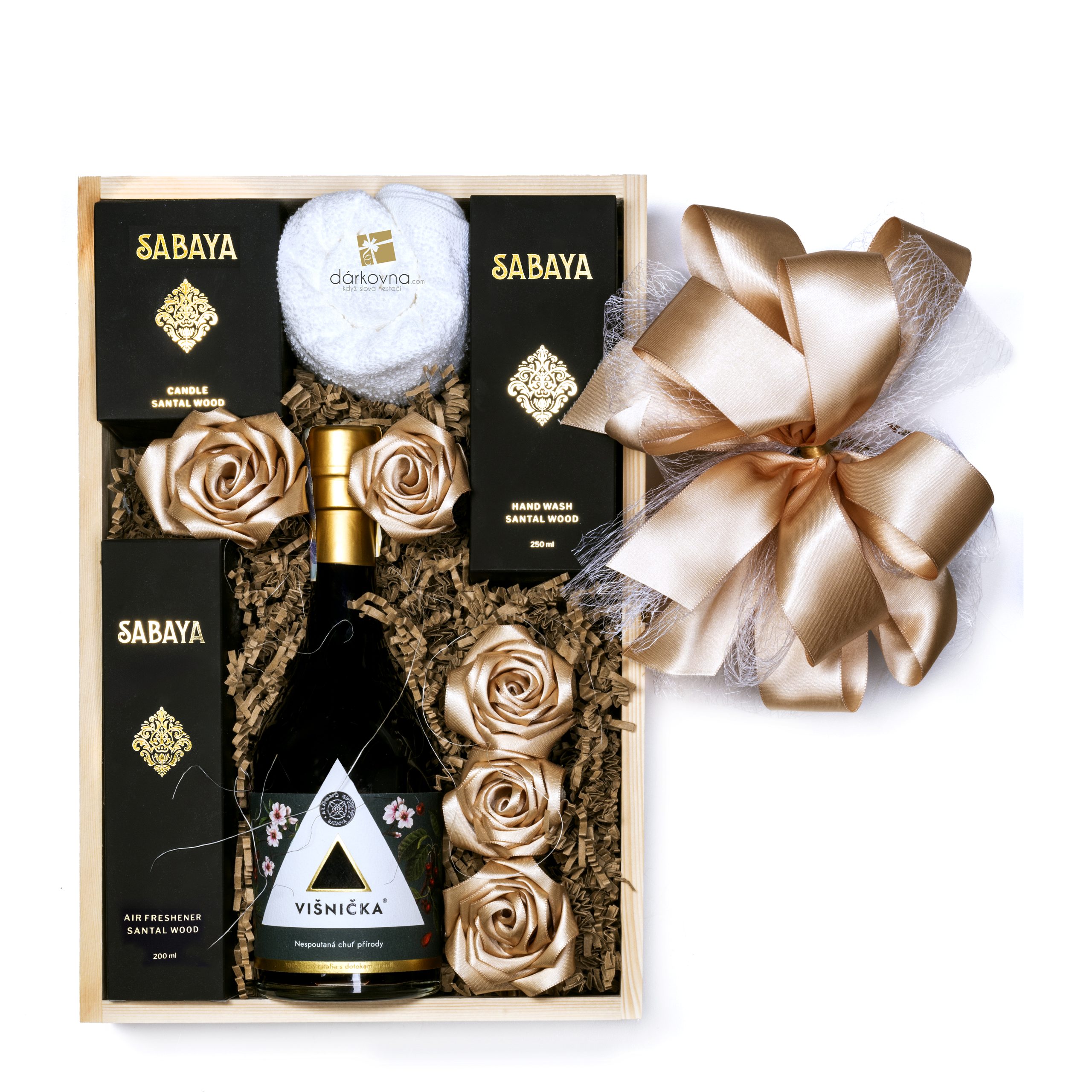 Darčekové balenie – ručne viazaná luxusná mašľa, výplň SizzlePack, celofán, ozdobná darčeková kartička (je možné pridať osobný odkaz, ktorý na kartičku ručne prepíšeme zlatým perom).
