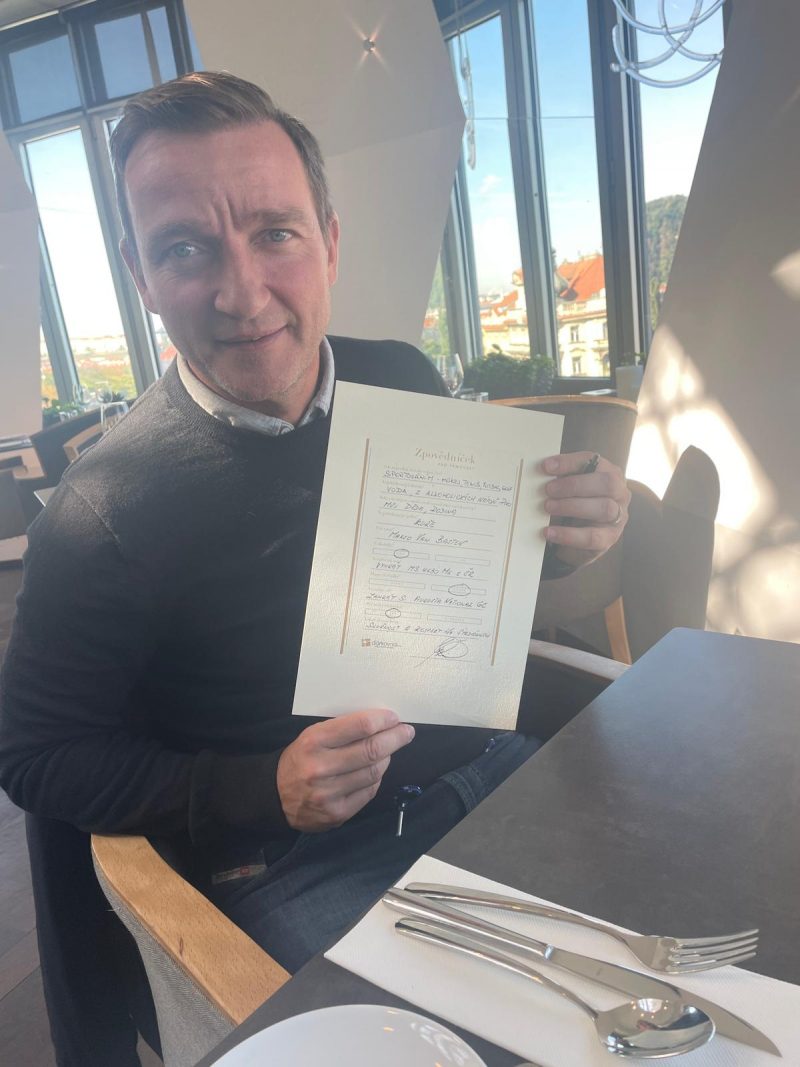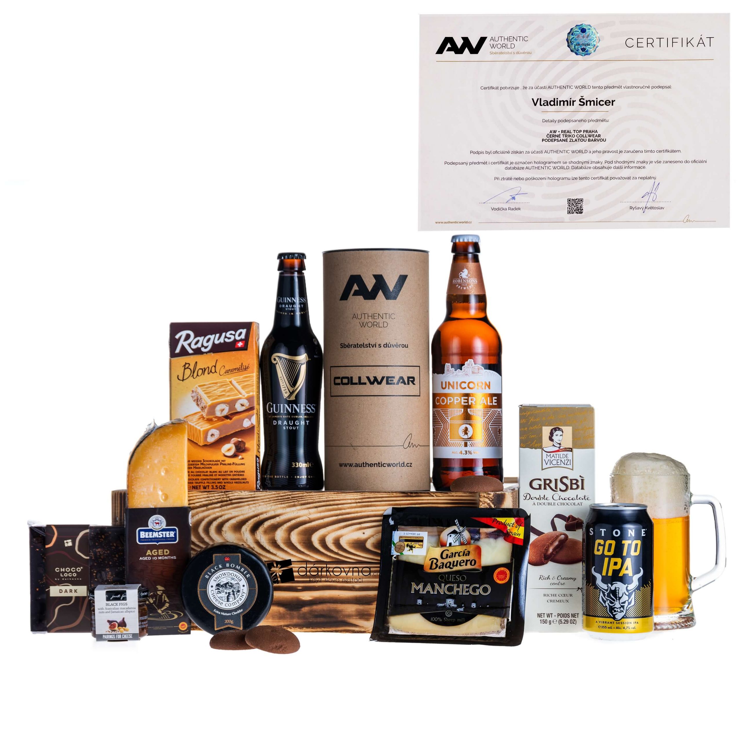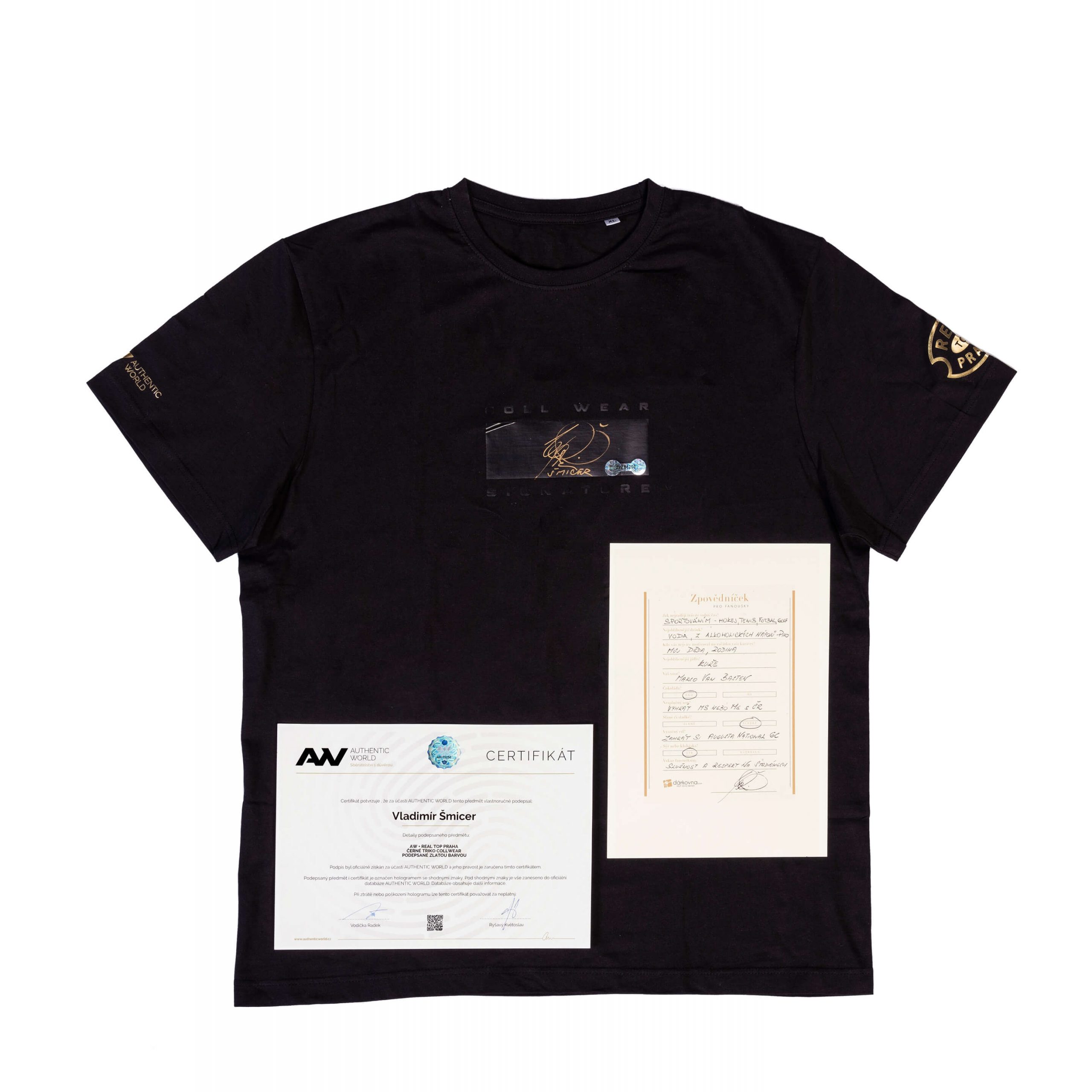 - Darčekový tubus s tričkom v čiernej farbe vlastnoručne podpísaný Vladimírom Šmicerom. Súčasťou tubusu je tiež certifikát potvrdzujúci pravosť podpisu. Ďalej je vo vnútri kópia dotazníka, ktorý bol pripravený pre fanúšikov a podľa ktorého bol darčekový kôš zostavený.