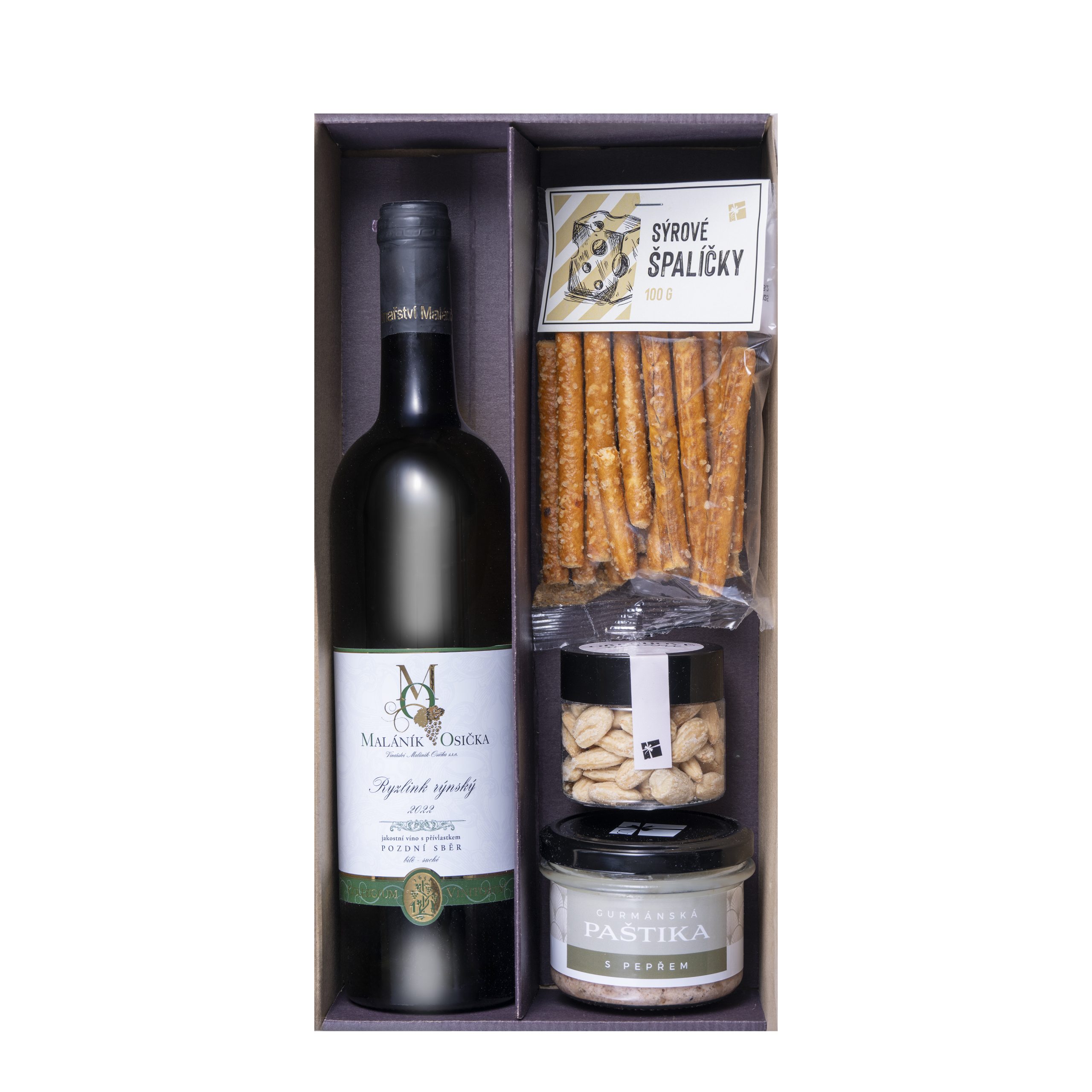 • Ryzlink rýnsky, suché, neskorý zber z vinárstva Maláník-Osička je elegantné biele víno s výraznými tónmi citrusov, zelených jabĺk a jemným nádychom minerality. Neskorý zber dodáva vínu plnšie telo a sviežu kyselinku, ktorá je typická pre túto odrodu. Ryzlink rýnsky, neskorý zber, je obľúbený pre svoju sviežosť, výraznú kyselinku a dlhý záver. 0,75l