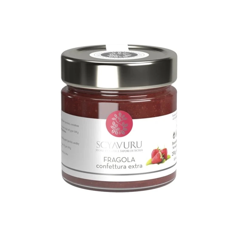 Kvalitný jahodový extra džem zo Sicílie bez umelých farbív, aróm a konzervantov.