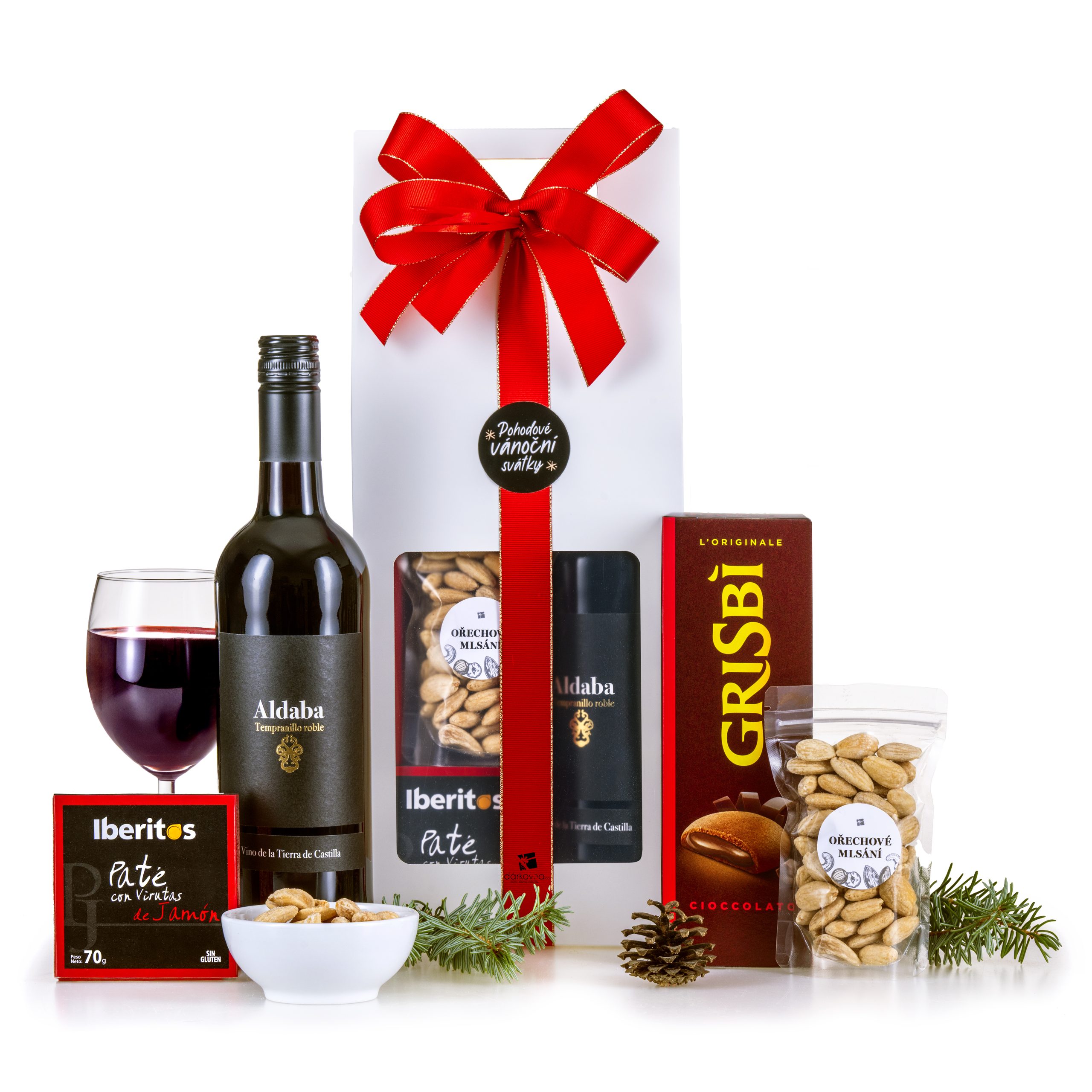 Vianočný darčekový kôš v novom odnosnom balení. Novinka tohtoročných Vianoc. Suché červené víno doplnené o hriešnou kombináciou slaných a sladkých delikates. Darček, ktorý bude pre obdarovaného vyváženou kombináciou dobrôt a skvelým darčekom.