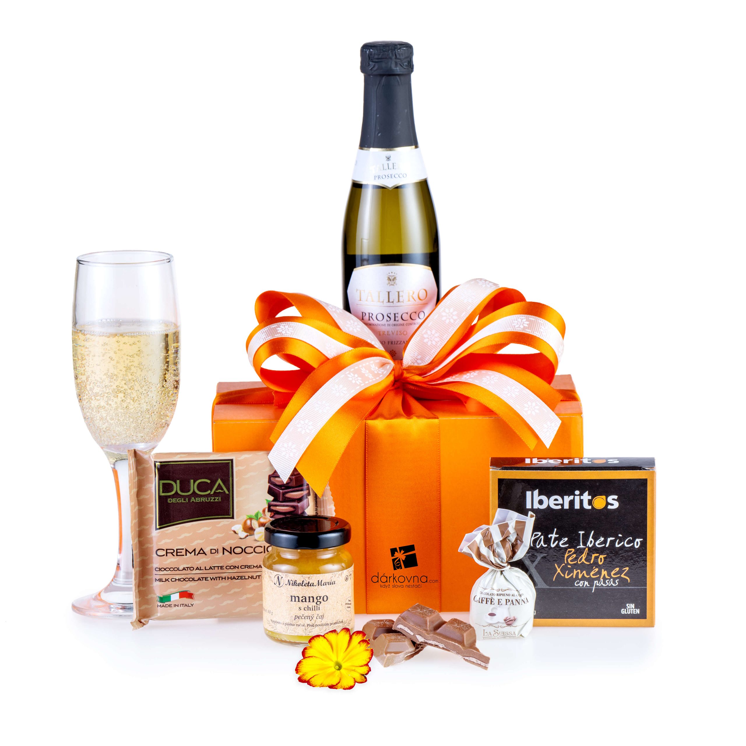 Roztomilé malé balenie s Proseccom a dobrotami. Potešte blízku osobu a doprajte jej krásnu chvíľku.