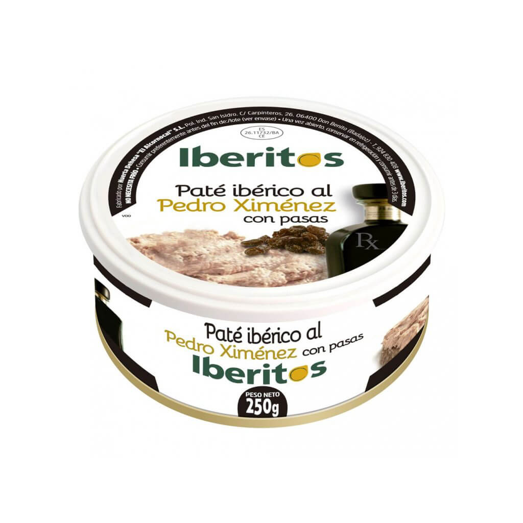 Pyrenejská paštéta s hrozienkami a sladkým sherry vínom je klasická španielska pochúťka, ktorú nesmiete vynechať na žiadnej tapenáde alebo tapas párty. Lahodná paštéta je vyrobená z mäsa čiernych iberských ošípaných a jej jemný nádych zabezpečujú hrozienka a sherry víno. 250g