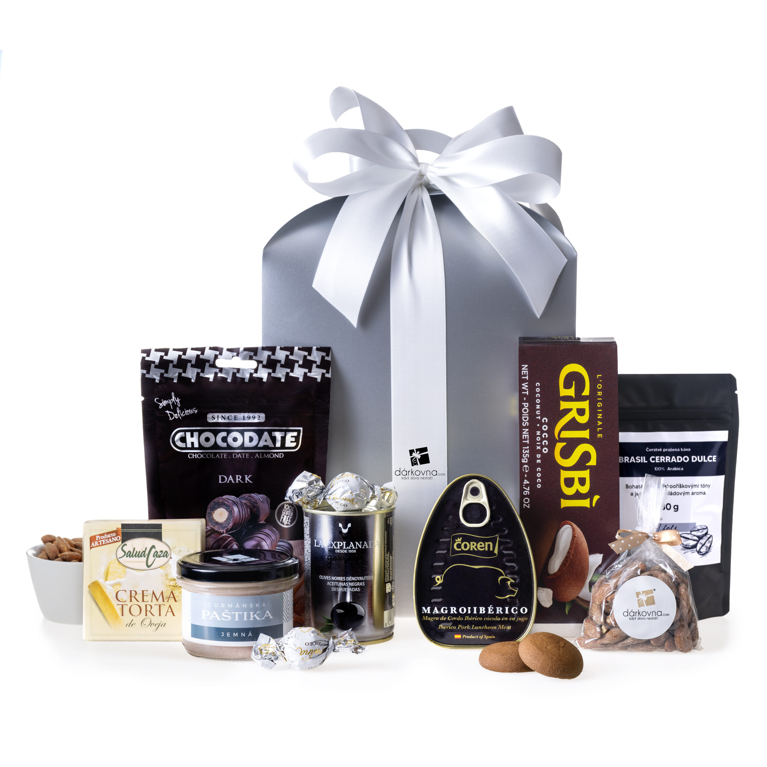 Darčekové balenie – luxusná mašľa, celofán, sisalové vlákna ako dekorácia, ozdobná darčeková kartička (s možnosťou pridať osobný odkaz, ktorý na kartičku prepíšeme zlatým perom).